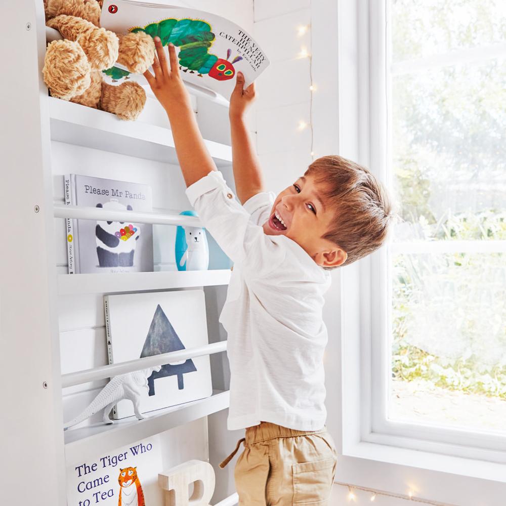 Our wall mounted bookcase displays the cover of the book rather than the spine, so it's easier for early readers to find their favourite; it's a great space-saver in nurseries and a stunning wall feature in children's bedrooms, thanks to the lovely mix of crisp white and natural wood. It's made from sturdy MDF to make sure it'll stay the distance - when they grow out of picture books you can turn it into a home for soft toys, comics, or any other precious mementoes.