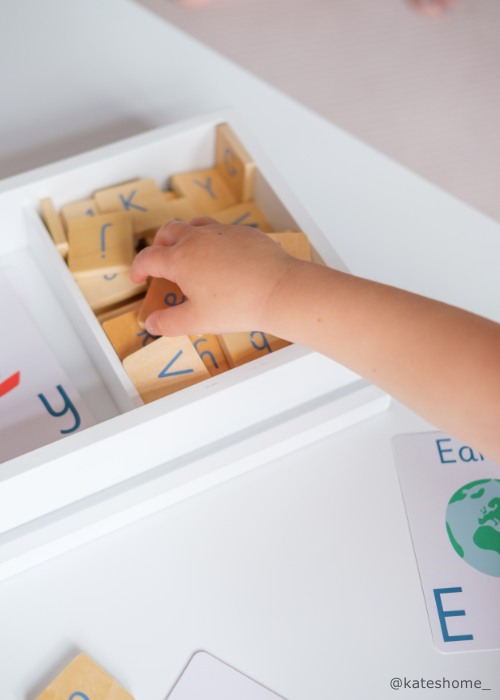 The box is made from smooth MDF with a Bright White finish; it has a chalkboard on the lid and a tray on the reverse for sand, flour, or grains. It comes with 52 wooden alphabet tiles (with upper case letters on one side and lower case on the reverse), 26 illustrated alphabet flashcards (with upper case and lower case letters on one side and letter formation guides on the reverse), and a wooden pencil. PLEASE NOTE: We do not supply sand or chalk with this toy.