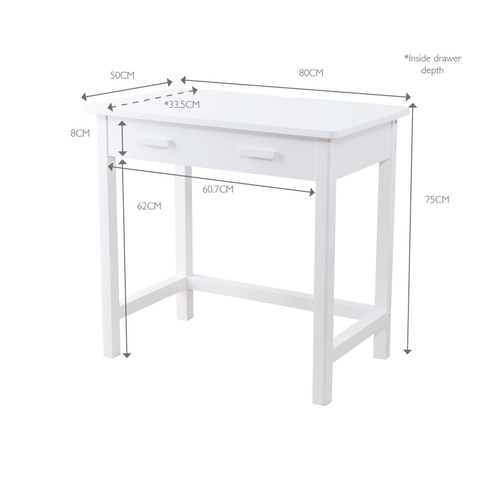 Painted Bright White, it's made from sturdy MDF with solid wood legs. It has one roomy and easy to open drawer fitted on smooth runners, plus an opening for cables at the back of the top panel to keep everything neat and tidy.