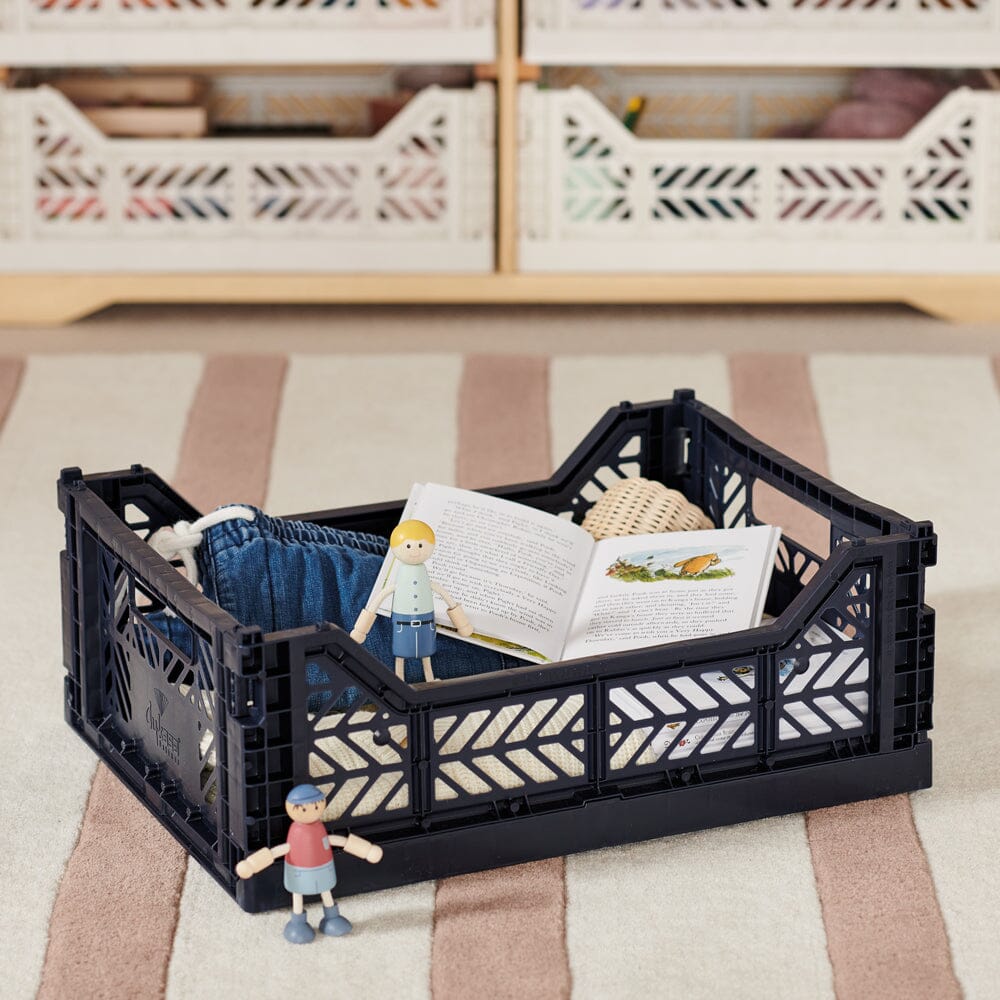 Time to tidy up. The Midi Foldable Crate in Navy is here to save the day. These oh so stylish storage saviours are crafted from recycled plastic and made to last. Sustainable, strong and stackable too, these savvy space savers are ideal for stowing just about anything - big or small. Take a look at our full range of Aykasa folding crates.