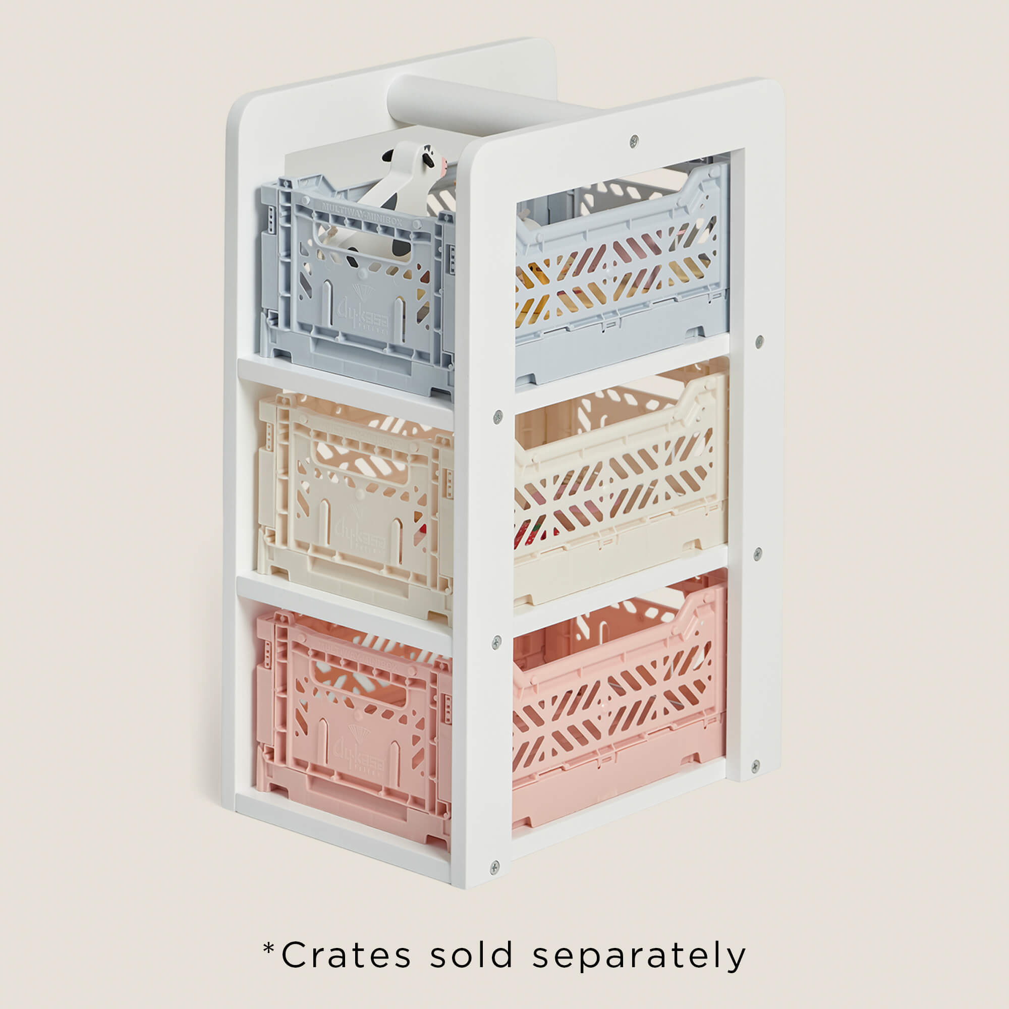 Keep small spaces tidy in style with our Carter Mini Crate Storage, designed to hold three Aykasa mini crates (sold separately). More compact than the Midi, this petite storage tower is the perfect fit for a desk, play table, or any corner where you need to keep little essentials organised.