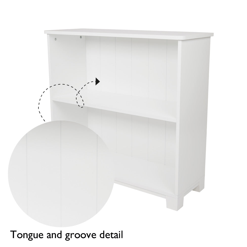 The frame is built from solid MDF with solid pine wooden feet for extra sturdiness. At the back of the low bookcase, you'll find tongue and groove detail that ensures the bookcase will fit seamlessly into any contemporary space.