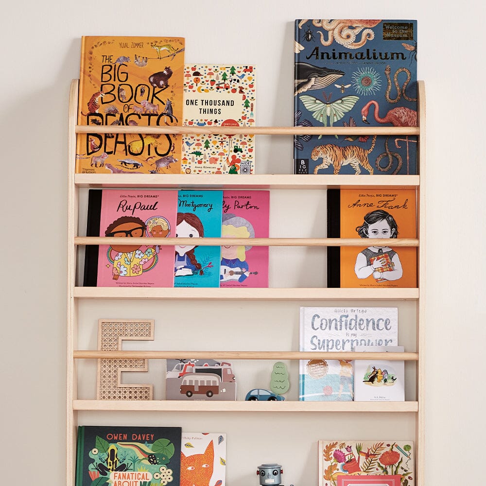 Create an inviting reading space with the Greenaway Bookcase in Natural, a beautifully designed wall-mounted book display that makes books the star of the show. Its front-facing design helps children easily browse and select their favourite stories, fostering independence and a love for reading.