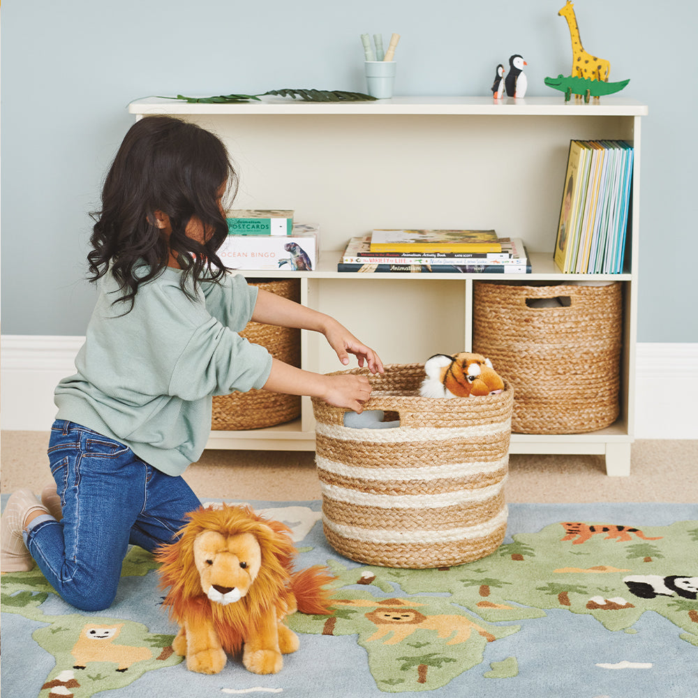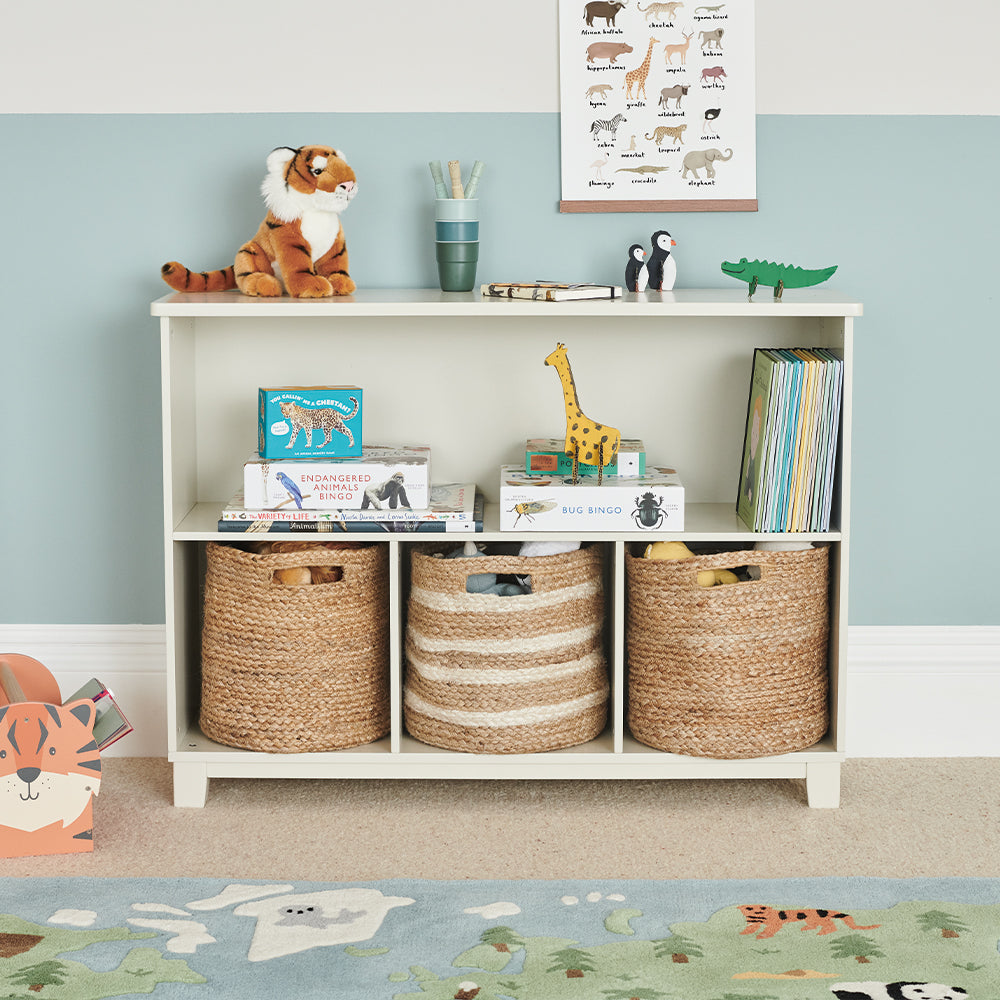 Offered in a soft ivory and natural shade, this Jute Storage Basket makes the perfect addition to a contemporary home. As it's made from jute, it's naturally strong and robust and looks super chic on shelving, in any of our cube storage units or tucked neatly into the corner of the room. What's more, the handle makes it easy to move around and accessible for little ones too.