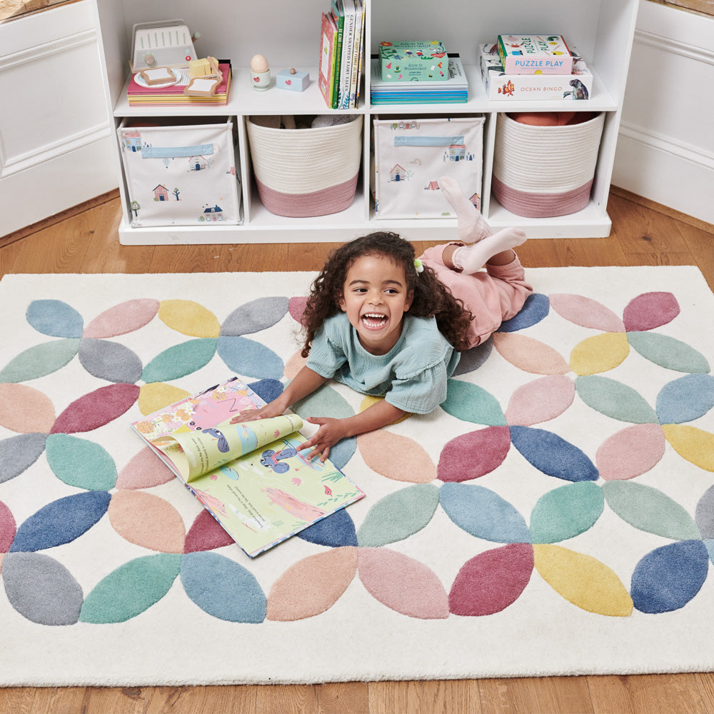 Remember playing with kaleidoscopes when you were small? This beautiful 100% wool rug is equally full of gorgeous colours and is one of our bestselling designs.