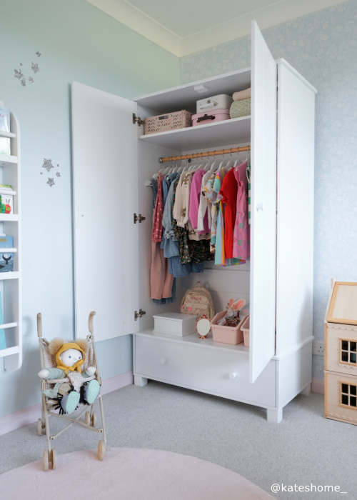 Like all our kids' furniture, this children's wardrobe is sturdily built and rigorously safety tested but we do recommend that you use the Anti-Tip Safety Kit supplied with it. Hangers sold separately.