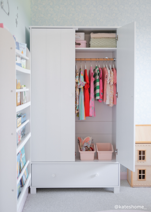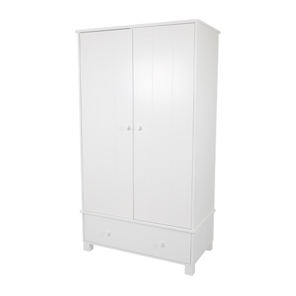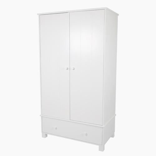 This contemporary kids' wardrobe has plenty of hanging and storage space and a smooth-running, roomy drawer at the base. The rail can be fitted at three heights depending on the age of your child, and the shelf above can be removed. the tongue and groove detail makes this wardrobe suitable for a newborn's nursery right up to a teenager's bedroom, it will even last until they've flown the nest.