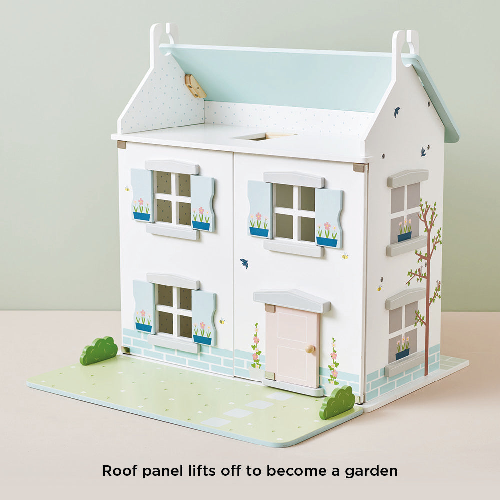 A fresh spin on the traditional doll house. Our 360 Dolls House & Garden is uniquely designed with opening doors and play elements front and back so it's great for solo and shared play too. The roof panel lifts and doubles up as the garden complete with removable hedges.