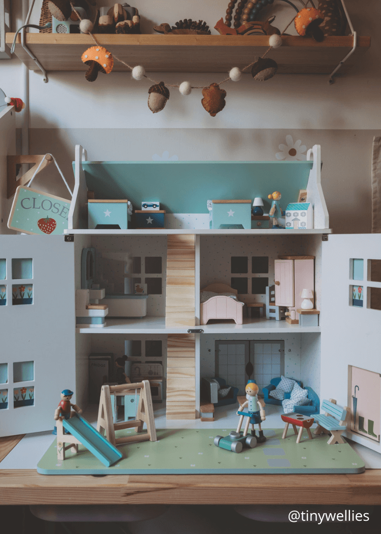 We love the charming painted details on the walls - birds tweeting, flowers blooming - there's so much to spark your child's imagination. It's a wonderful future heirloom piece. Complete the set-up with our hand-painted family characters, garden furniture set and indoor doll house accessories, all available separately.