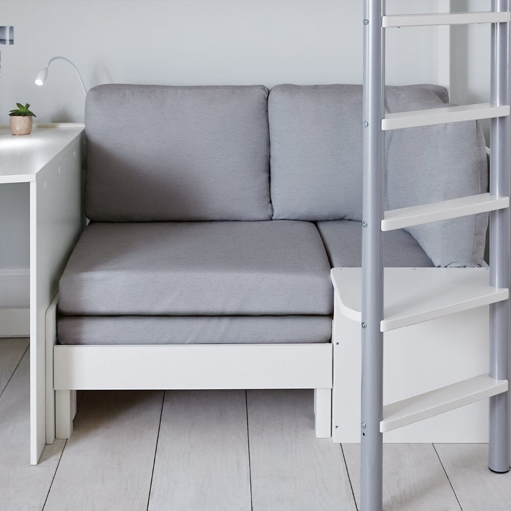 The sofa seat makes a cosy nook during the day, but pulls out into a single sofa bed faster than you can say 'sleepover'. The configuration of the sofa bed, desk and ambidextrous ladder can be changed to suit your room layout.