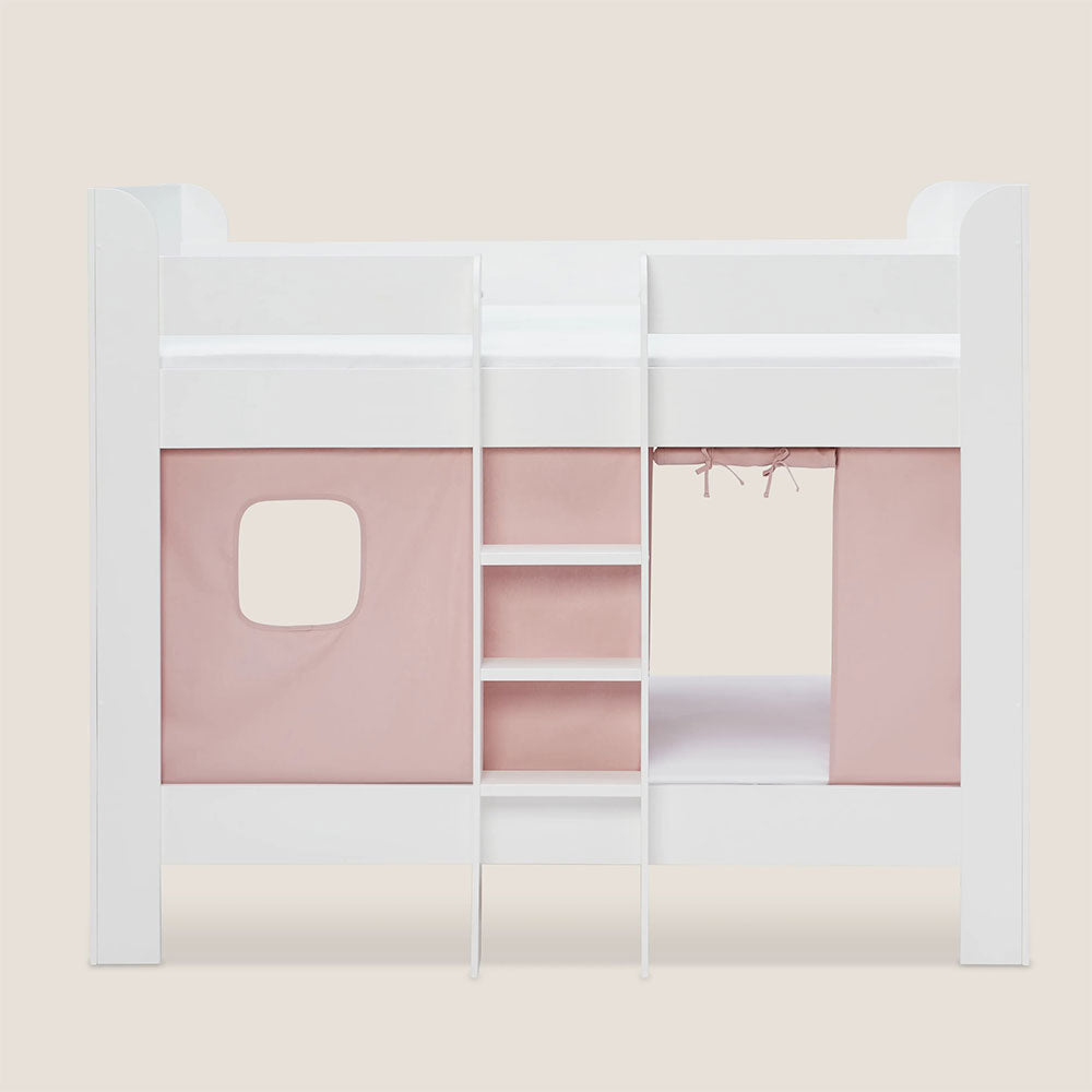 The Paddington Bunk Bed in Chalk Pink is a stylish and practical choice for any child's room. With its lovely rounded edges and central ladder, it fits seamlessly into any layout. The generous space between the top and bottom bunks makes bedtime stories easier for parents, and the charming bed curtains add a touch of fun. Pair it with our Underbed Storage Drawers for extra storage space.
