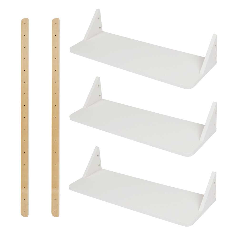 Showing off the versatility of our Paxon Modular Shelving system, this set contains two beech wall supports and three MDF shelves to create a practical addition to playrooms or bedrooms.