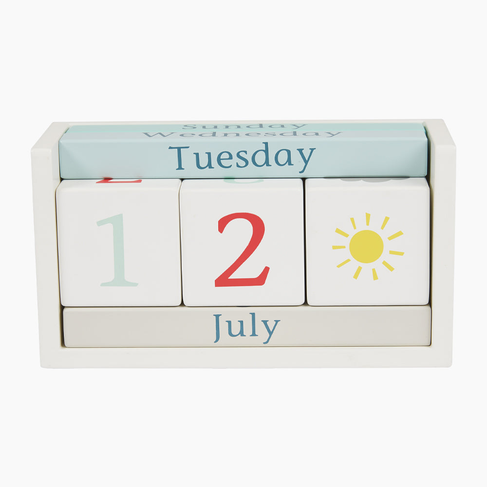 A simple wooden calendar and a brilliant learning tool; it will help children to learn the days of the week, the months of the year, numbers and colours, as well as helping them get to grips with our brilliant British weather! Children will love turning over the different coloured blocks to find the right face for the day.
