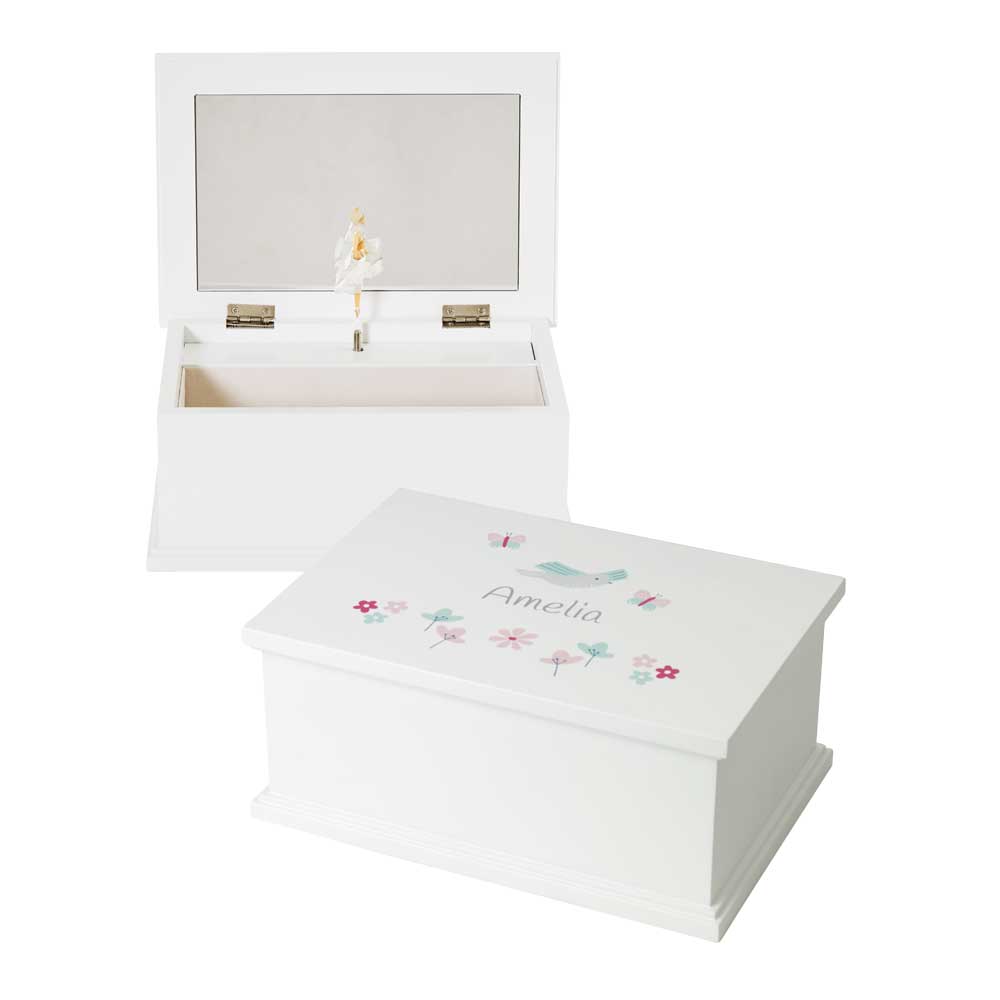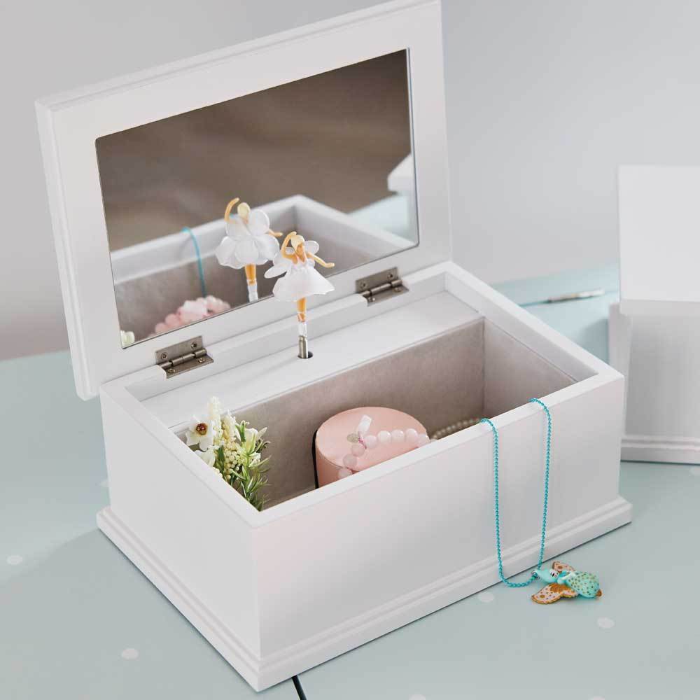 With a felt lined interior and a pretty spinning fairy, this children's jewellery box definitely ticks all the boxes! It plays the charming Swan Theme from Swan Lake.