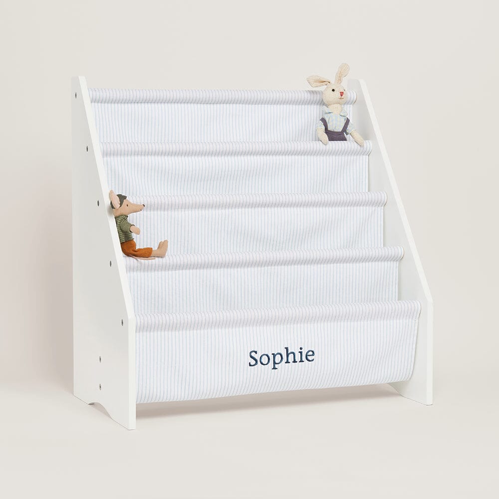 From their first collection of board and picture books to magazines and more, this good-looking Sling Bookcase is storage that keeps on giving. The unit is constructed from sturdy MDF with solid wood poles and hard-wearing canvas slings that hold their shape no matter how many books end up nestled inside.