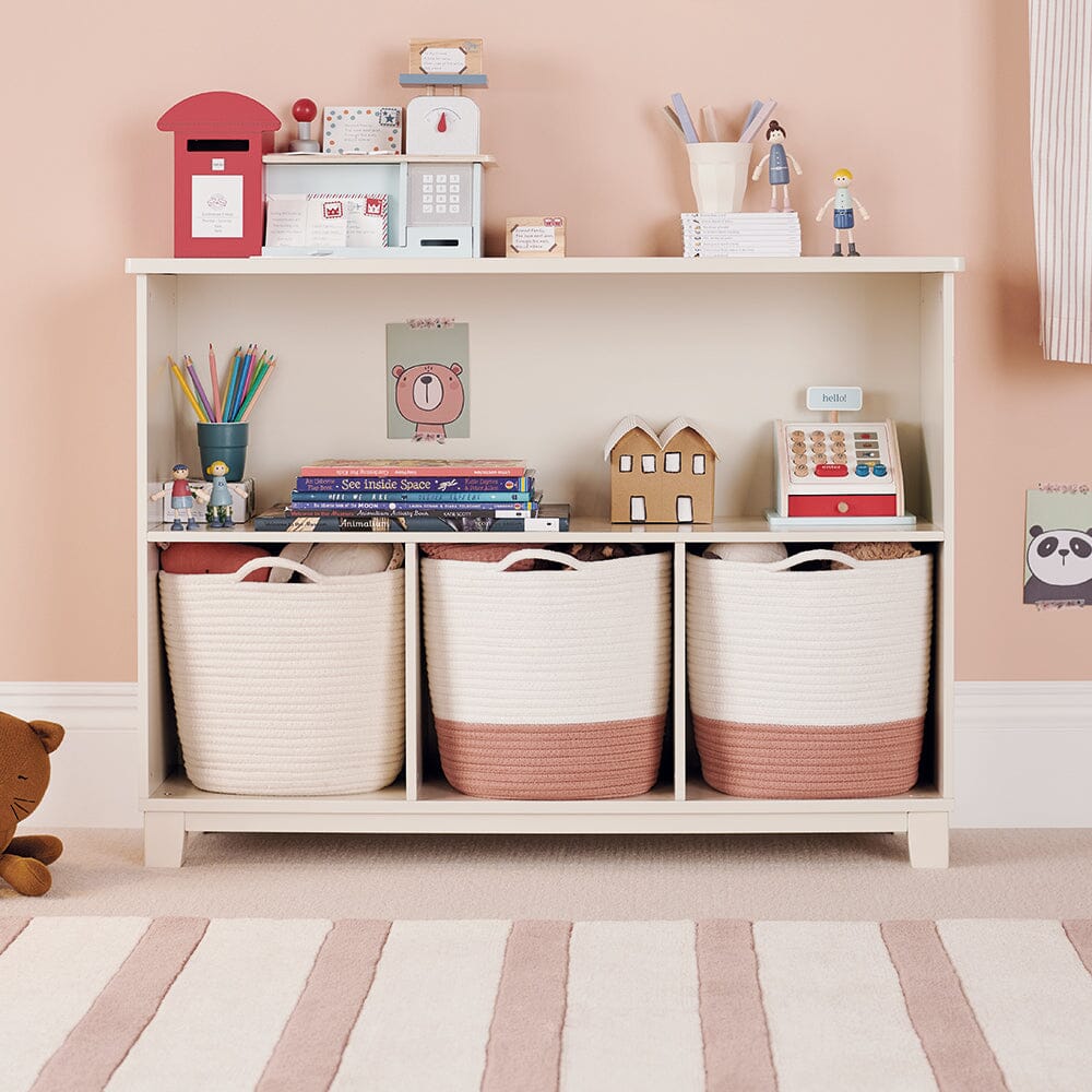 These storage baskets are made from woven rope - they're soft but sturdy! They have a chic, rounded shape and look fabulous in our Abbeville Cube Storage and our modular Alba Playroom Storage.