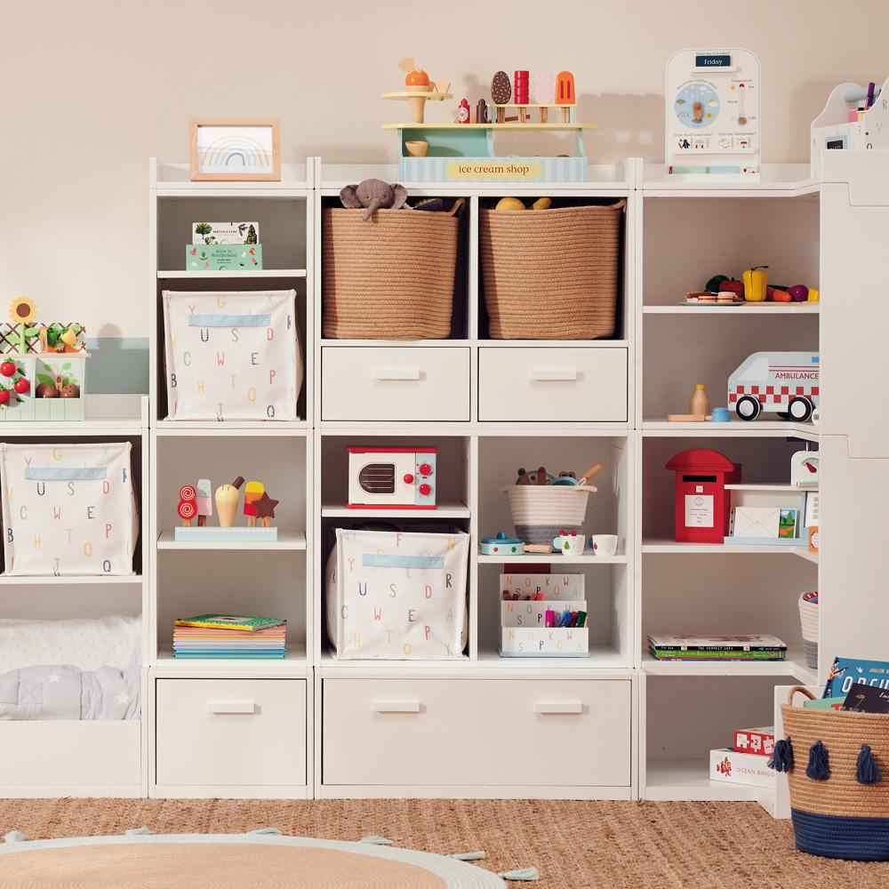 These natural coloured baskets have a chic, rounded shape and look fabulous in our Abbeville Cube Storage and our modular Alba Playroom Storage. Their strong handles make them easy for children to lift on and off shelves and move them to where they want to play.