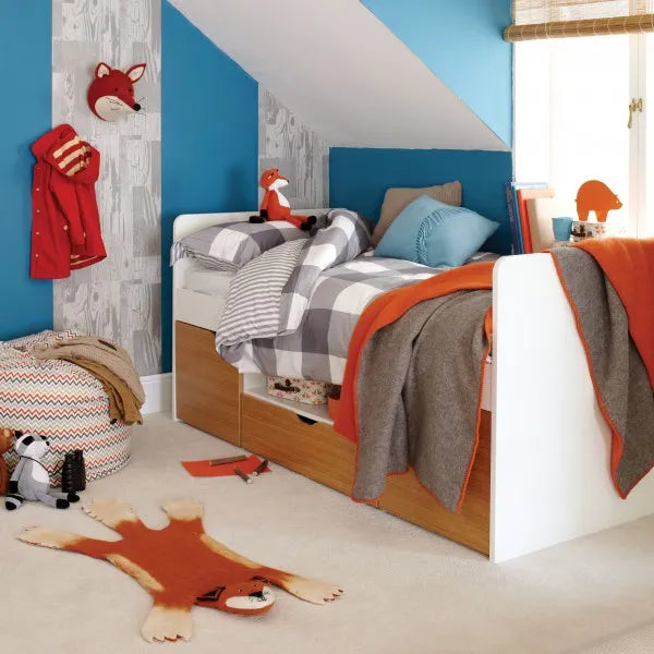 Transform your child's bedroom with the Southside Cabin Bed in Oak, a stylish and practical solution that maximizes space and keeps everything organized. This cabin bed is thoughtfully designed with two spacious built-in cupboards, perfect for storing toys, books, or other essentials. A generous drawer beneath the bed provides ample space for bed linen, while a handy shelf keeps prized possessions within easy reach.