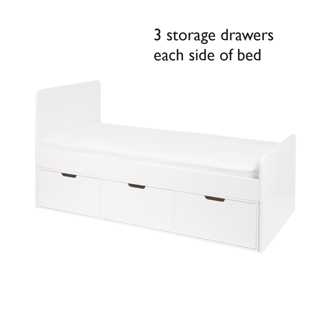 Maximise your storage potential with this single storage bed, complete with 6 deep under-bed drawers for stowing away toys, games, clothes and bedding. Thanks to its clever design, it's easy for little ones to have a place for all their belongings.