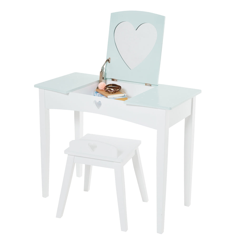 Sweetheart Dressing Table & Stool, Aqua Polka Dot