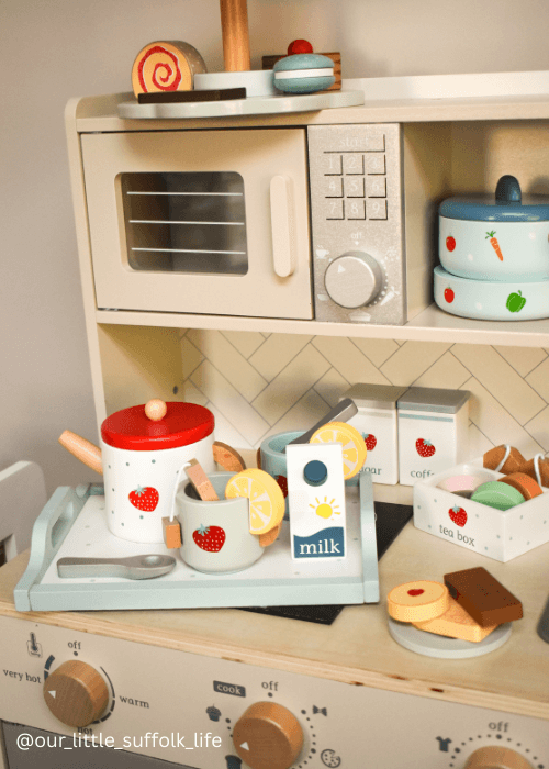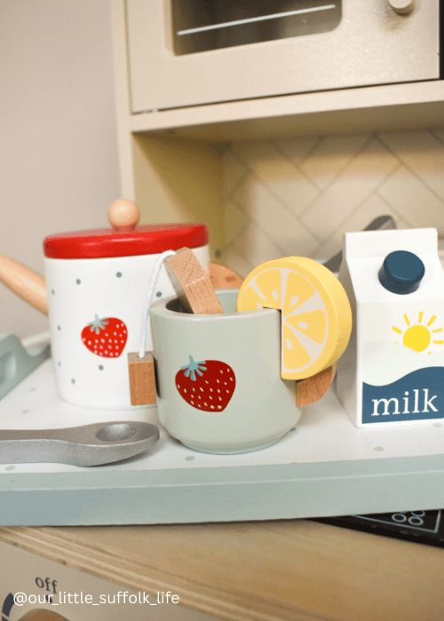 This wooden tea set is one of our favourite children's toys. It's the perfect set for children who love to mimic their parents' daily rituals. From deciding whether to indulge in a pretend herbal tea or a milky coffee, to slotting lemon slices into place and choosing between the three delicious biscuits, this is role play fun at its sweetest.