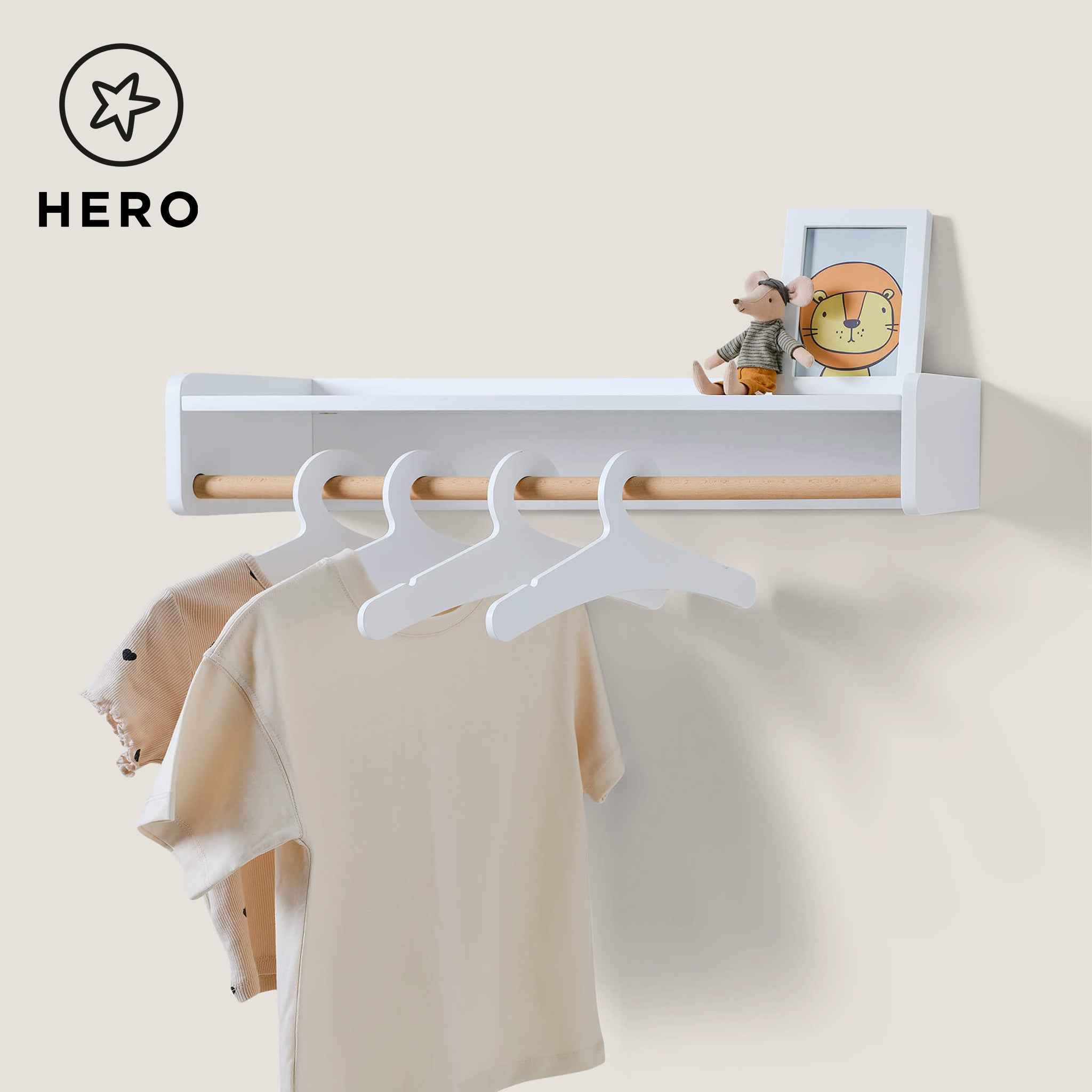 Make mornings easier with the Tomorrow’s Clothes Rail. Designed for kids, this compact rail helps organise outfits ahead of time, reducing morning chaos. Pair with our white hangers to finish the looks.