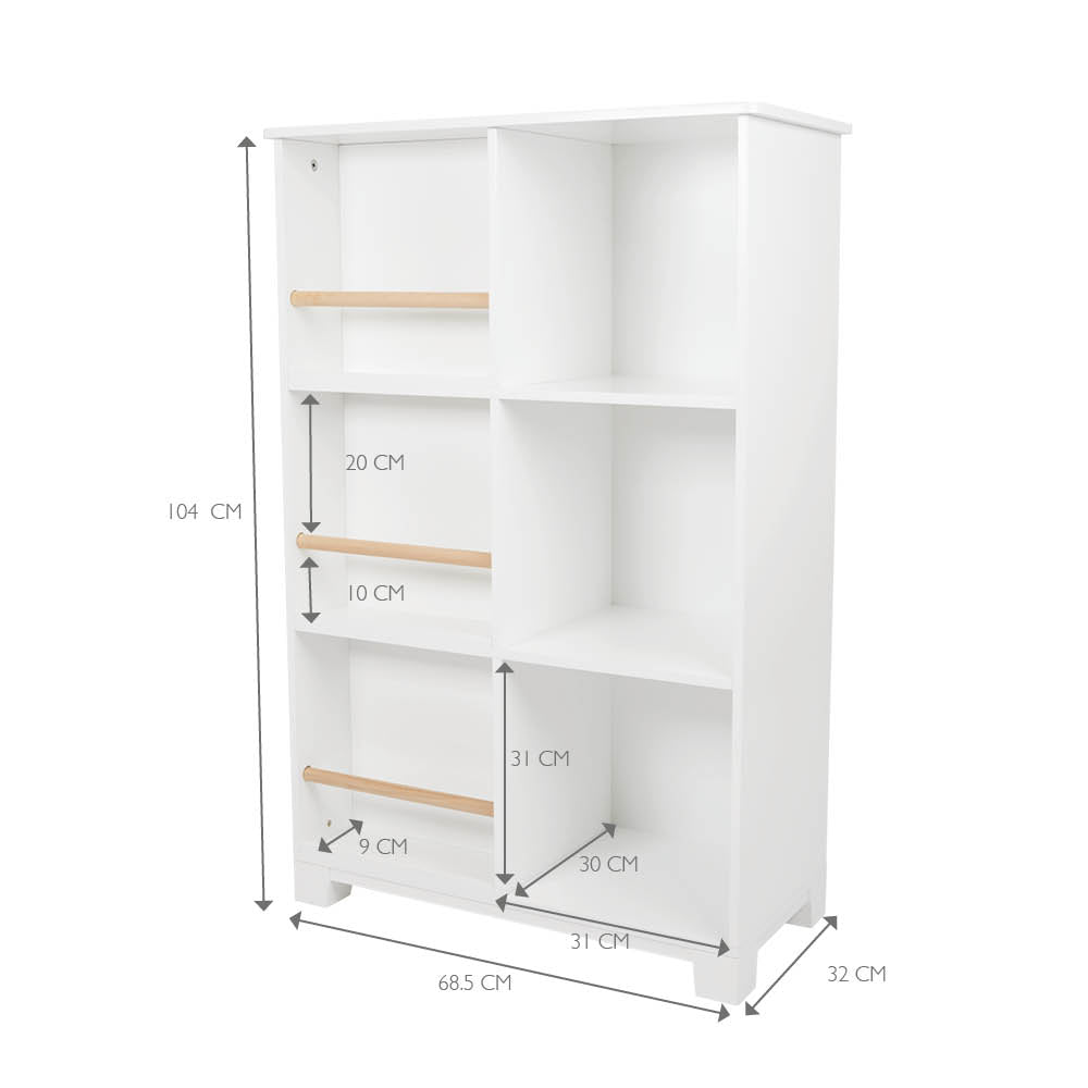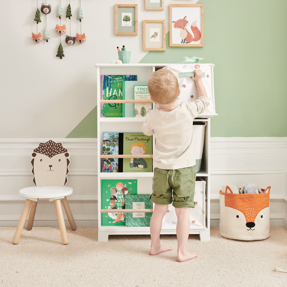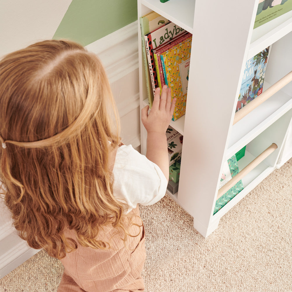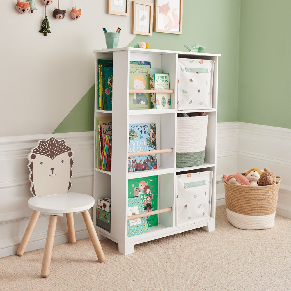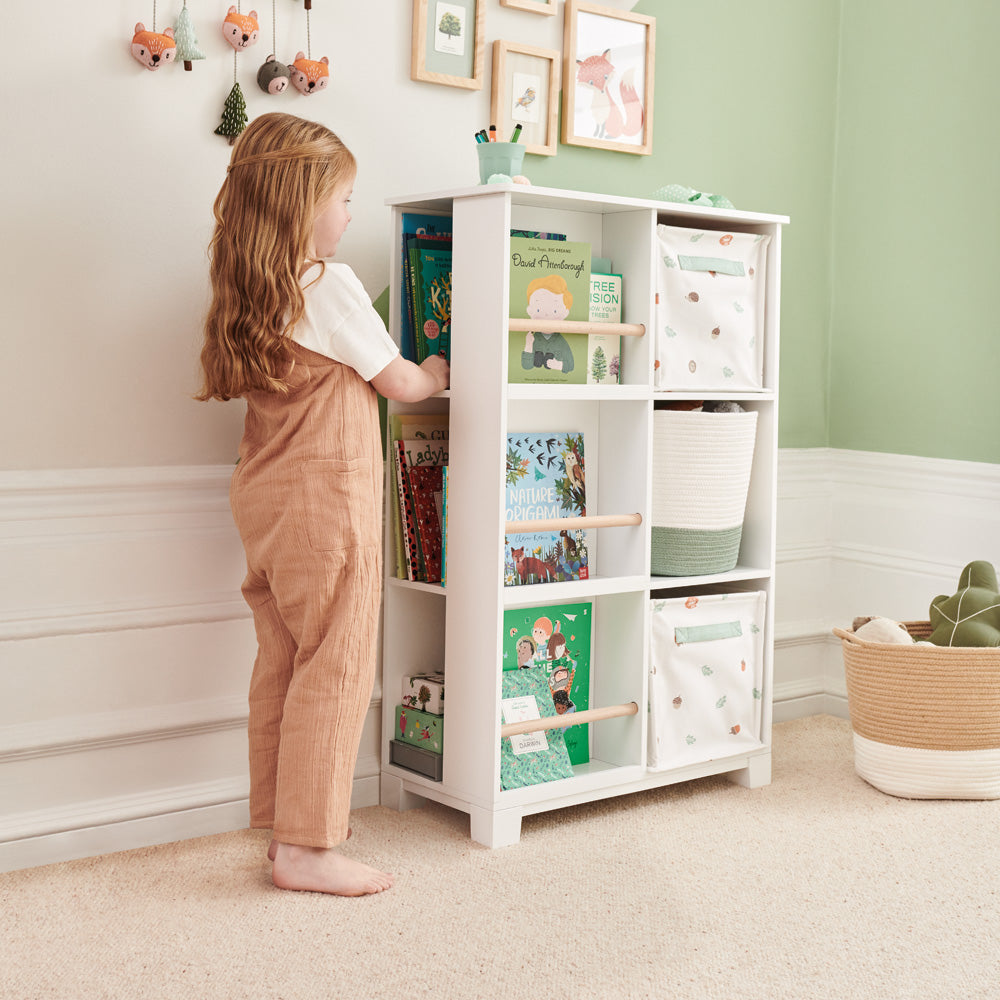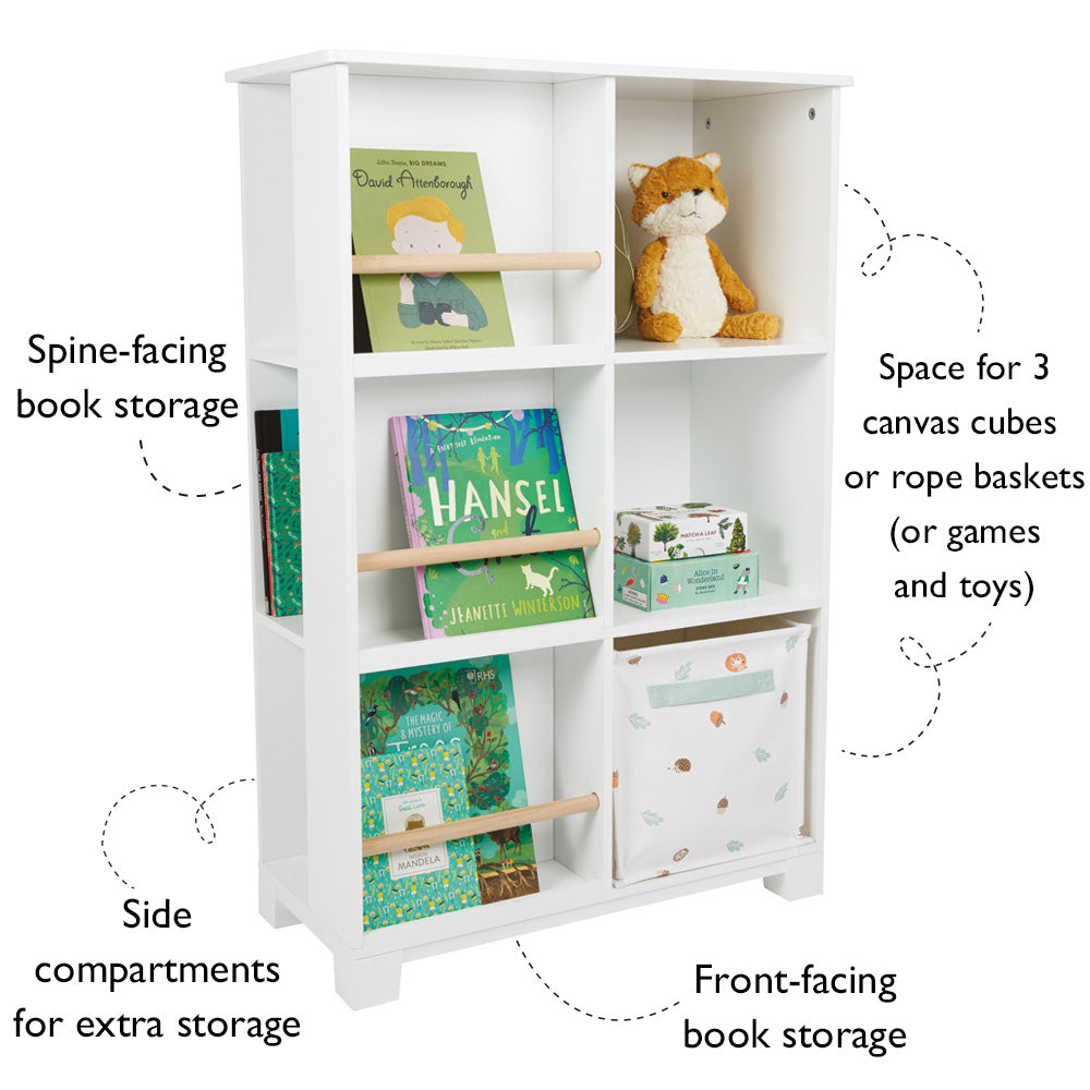 The Wonderland Bookcase is not your ordinary children's bookcase. Great for bedrooms and shared study spaces; this super children's shelving unit won't only help tackle unruly books but games and toys too. Front-facing storage sections give their book-of-the-moment top spot while side compartments offer spine-facing storage for the rest of their library. If you already own a few of our canvas storage cubes, you can tuck them (contents and all) into this do-it-all unit too. Missing out on our brilliant soft storage solutions? Head here to find soft canvas cubes and rope baskets to use with your Wonderland Bookcase.
