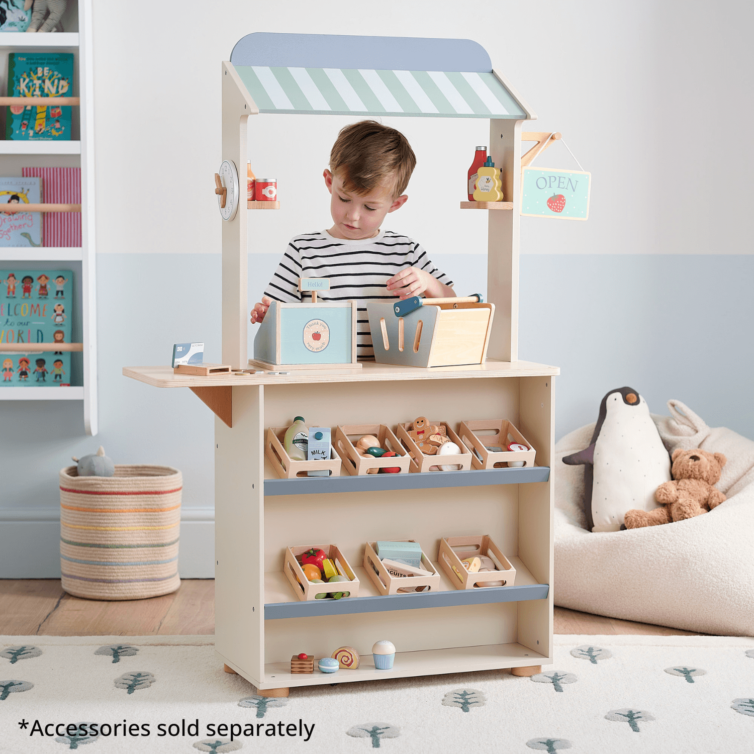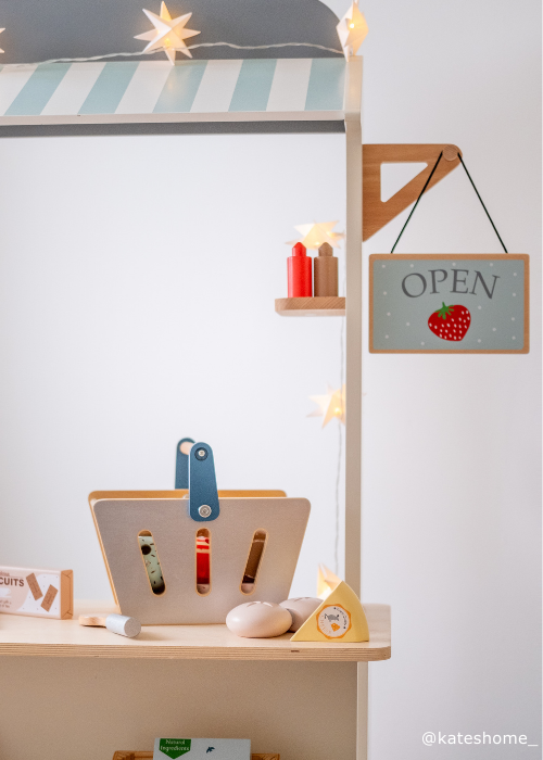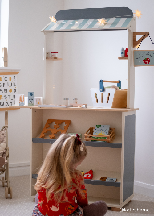 ✓ Lots of space for added accessories, like our wooden till or fruit and veg baskets