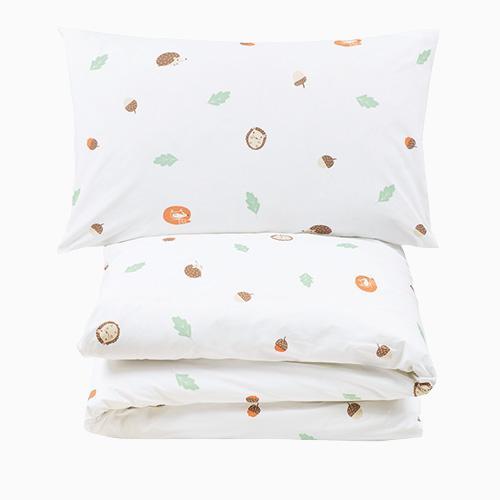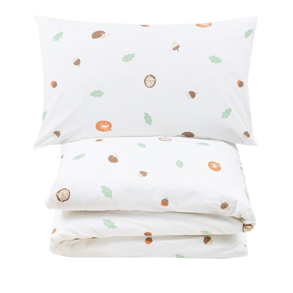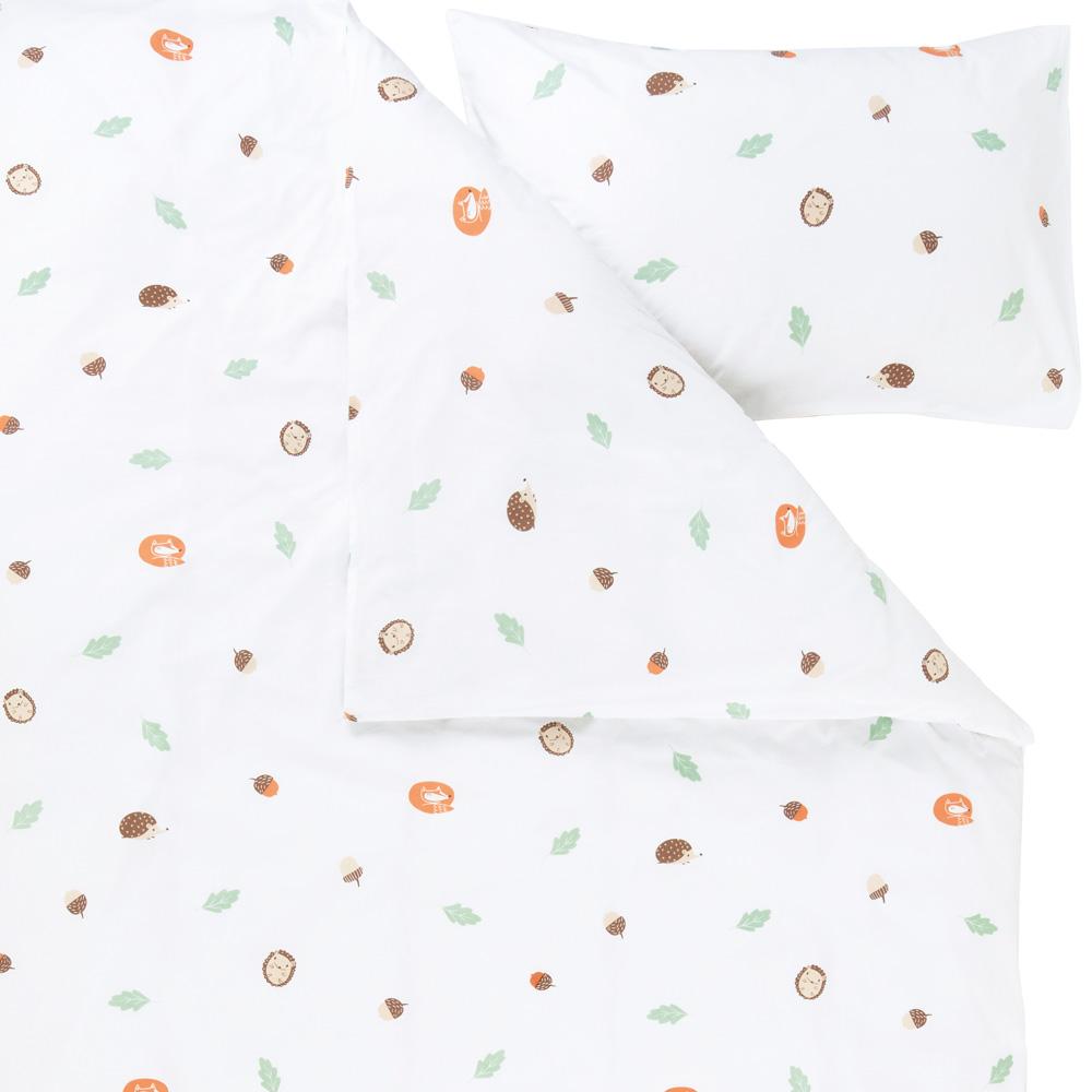 This enchanting duvet cover and pillowcase set features falling acorns and leaves with sleepy foxes and cute hedgehogs - and it's reversible too! Sweet dreams are guaranteed beneath this imagination-inspiring design.